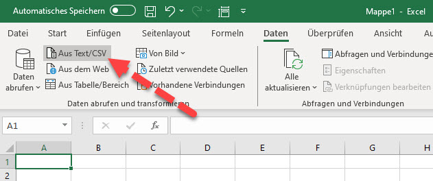 Excel CSV Daten aus Datei mit Dezimalpunkt als Komma importieren