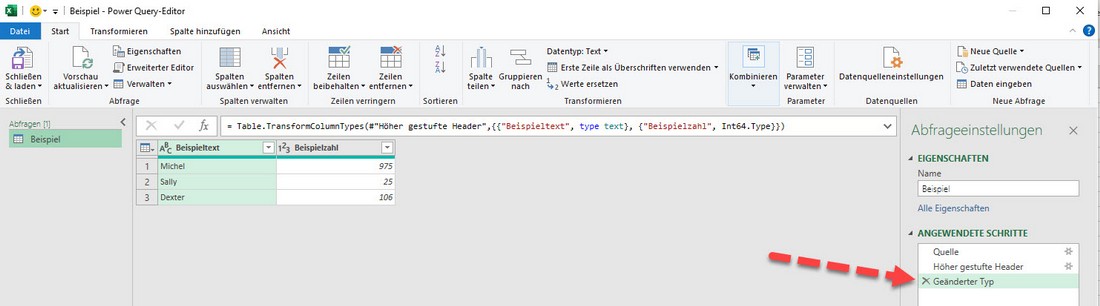 Zum Glück kann man im Power-Query-Editor einfluss auf dieses Verhalten nehmen und die Konvertierung des Datentypes entfernen. Das einfach auf "geänderter Typ" rechtsklicken und dann auf entfernen.